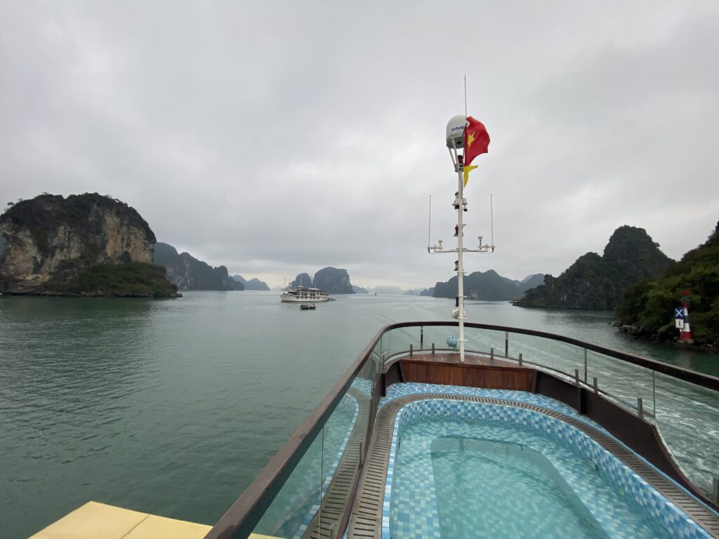 為什麼這麼說呢?在離船的時候有一份心得問卷要填,其中有一題要填你覺得表現特別好的服務人員,我特別問了一位會說一點點中文又服務很親切的小哥他的名字,結果他講完自己的名字之後又跟我報了船上每位人員的名字,說大家都很辛苦希望我都可以提到每位人員的名字🥺🥺真的差點沒哭出來,太感人了吧~這種感覺其實不只在懷舊號,在河內旅遊的期間常常有這種感覺,許多河內的飯店人員都流露這種熱愛自己工作、熱心助人的氣質,常常要給他們小費他們也會要你直接投 tip box,不論是公司規定還是純粹的利他主義,每次看到時總讓我感動不已~ - 氛圍:整體來說,懷舊號走的是歐美旅客喜歡的小眾清幽路線,不僅船上房間數少,就連景點行程安排上也都已避開多數旅客最愛去的驚奇洞和英雄島等(這些都是大多為下龍灣一日遊的標配,常常會搞到需要排隊走步道的狀況),跑的景點不多但可以介紹得很深入,各個景點也都很有靜謐感,有種私房獨家高級感,不過如果你是喜歡踩點,覺得一定要去經典行程的人,可自行斟酌要選這種蘭哈灣私房小眾路線,還是要選更大眾經典的下龍灣行程囉~