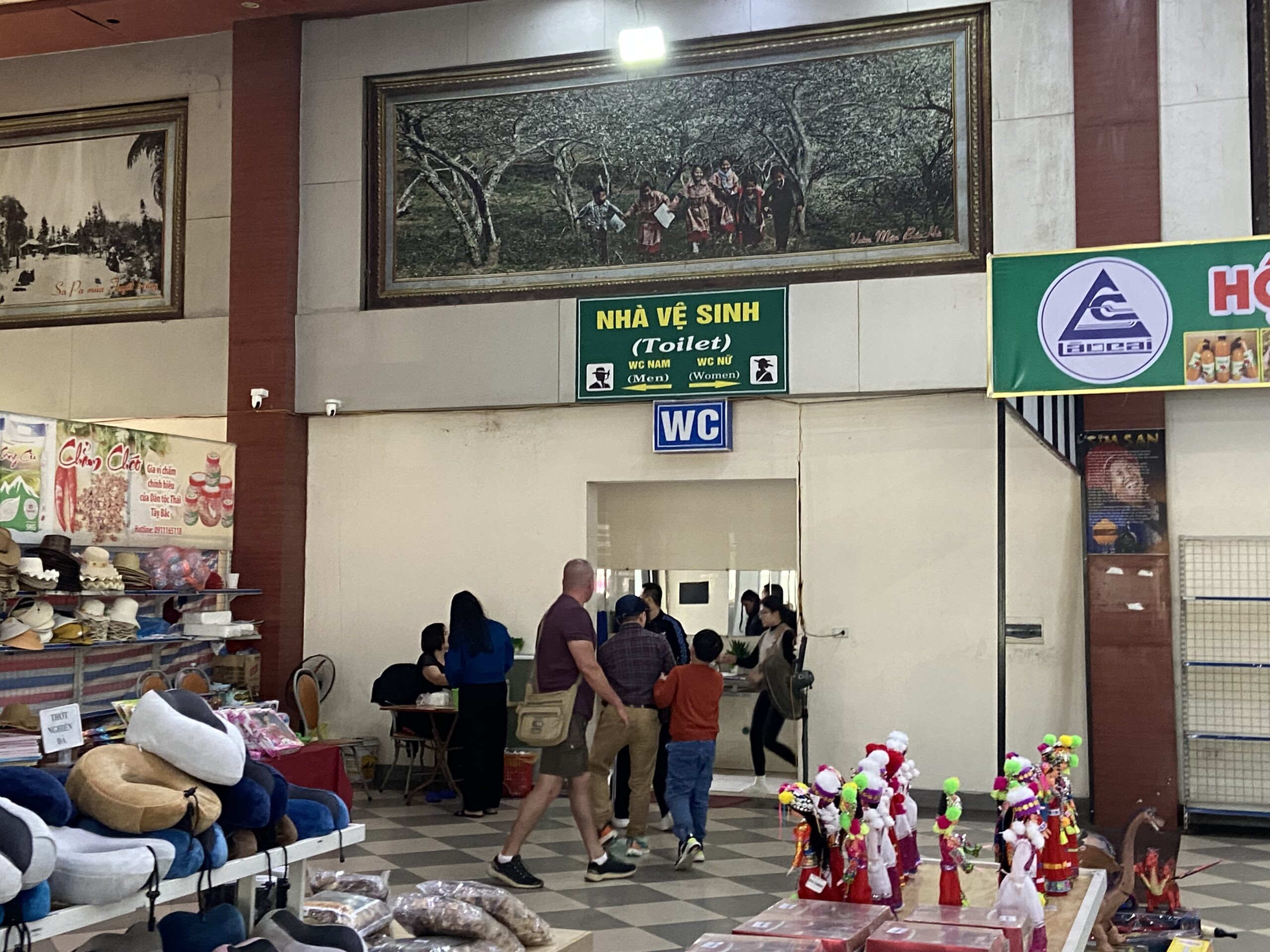 同樣車上也是沒有廁所的,如果中途要上廁所一樣也是要下休息站上,這次車程真的很長,加上同事說其實來的路上廁所還蠻乾淨的,我這次終於也突破心防去上廁所了~下車會提供拖鞋讓你不用穿穿脫脫,停的休息站蠻大也蠻乾淨的,廁所一次收費是 1000 VND(約台幣1.3元),確實蠻乾淨的,不過印象中也沒有衛生紙,記得自己帶衛生紙或面紙下去喔~